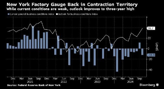 周二公布的数据显示,纽约联储10月份整体经营状况指数下跌23.4点,至五个月低点-11.9。低于零表明处于萎缩状态。该数据低于接受彭博调查的所有经济学家预估值。